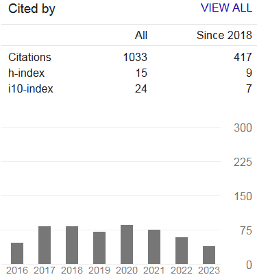 Google h-index: 15